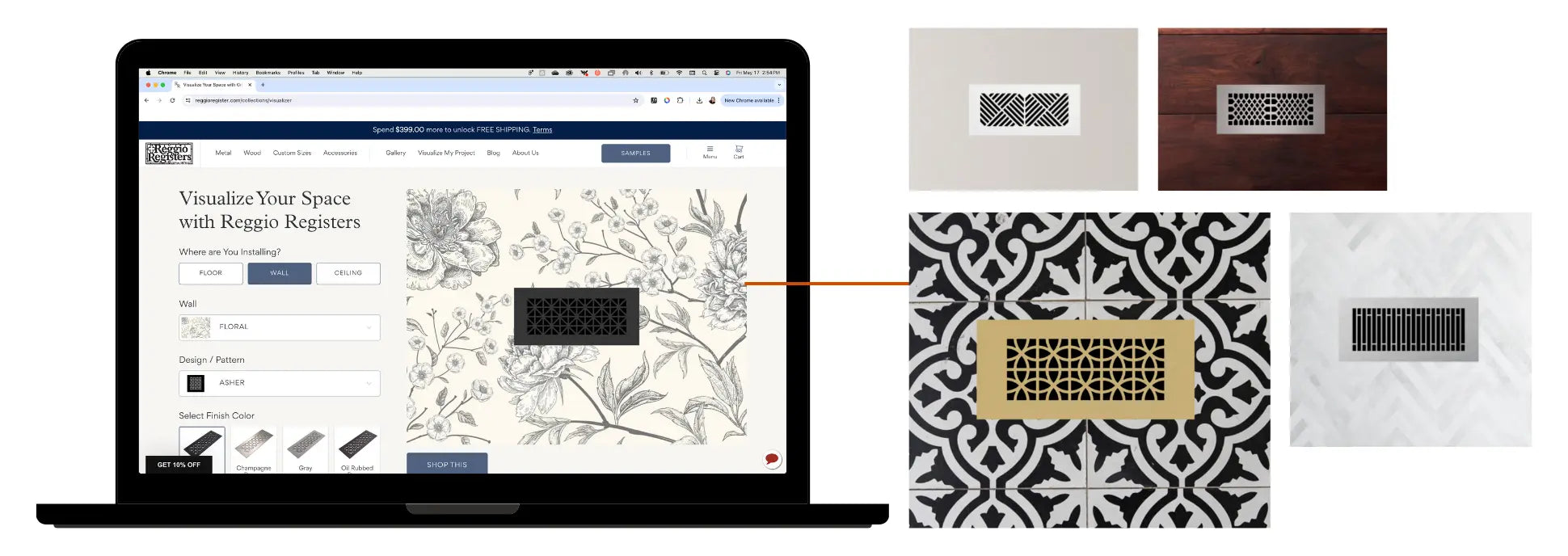 Visualize your space with Reggio Registers. See how our register designs and colors look together with different floor and wall installations.